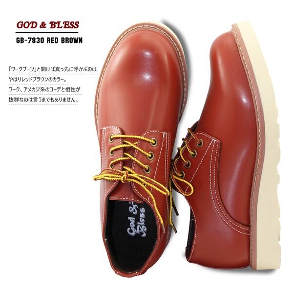 [メンズ] GOD&BLESS プレーントゥワークブーツLOカット BIGサイズ GB-7830 / ファッション 靴 ショート