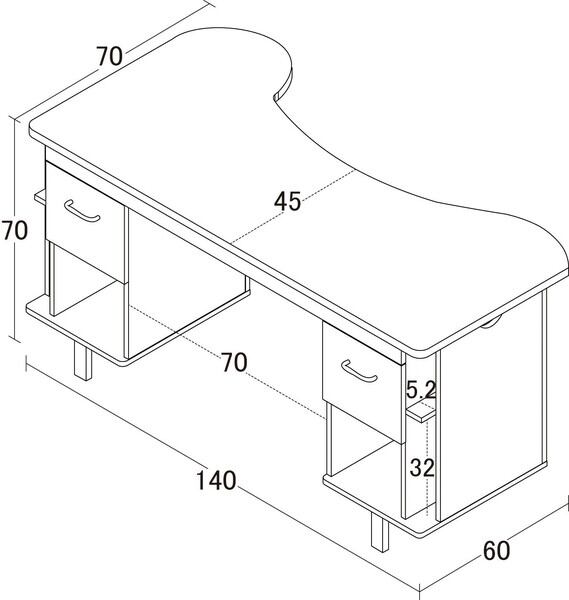 ●天板中央はネイル作業に適した奥行きの対面式デスク