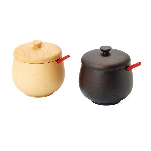 木製・蓋付丸型薬味入 *スプーン付 ナチュラル/ダークブラウン / 生活雑貨 食器・キッチン 容器・ストッカー 調味料入れ