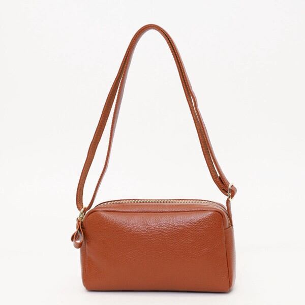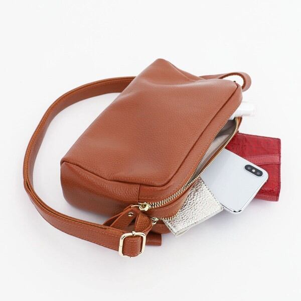 2層式でそれぞれが独立している間取りで、収納しやすくなっているシンプルなショルダーバッグ