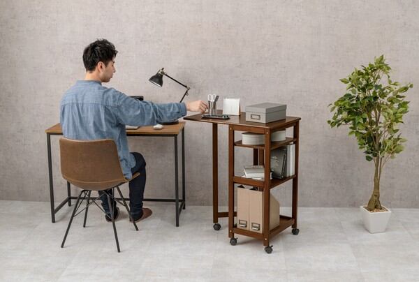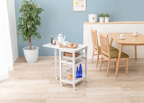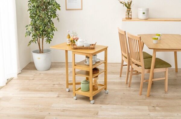天板を広げれば作業台に早変わりする便利ワゴン