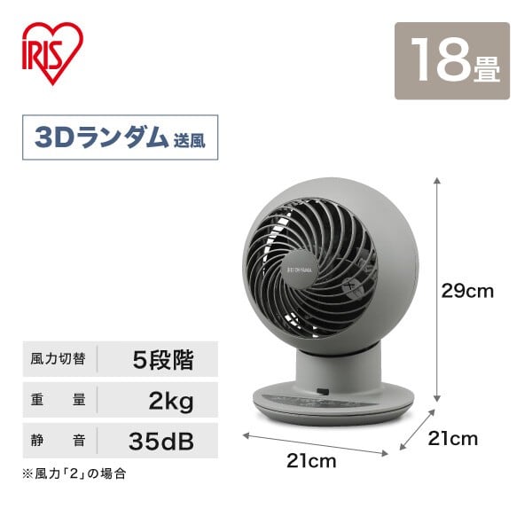 ●電源:AC100V(50/60Hz共用)●消費電力(50/60Hz):33W/32W(首振り固定時)、38W/36W(上下左右首振り時)●角度調整:横方向 自動約90°、縦方向 自動約72°●適応畳数:18畳●切タイマー:1、2、4時間●コードの長さ:約1.4m●保証期間:お買い上げ日より1年間------------------以上が表データ--------------------●サーキュレーターは、室内の温度差のある空気を循環させる『空気循環機』です