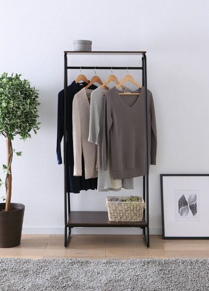 ■素材・成分:ハンガーパイプ:スチール(メッキ塗装)、パイプ:スチール(エポキシ粉体塗装)、棚板:プリント紙化粧パーティクルボード
