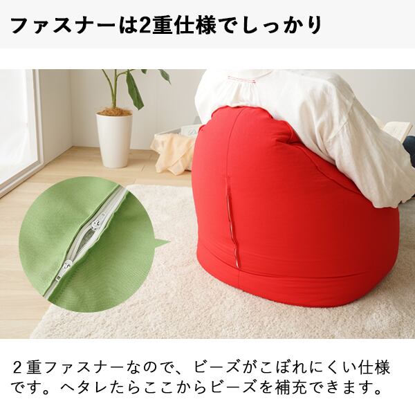 【材質】 中材:発泡ビーズ(ポリエチレン) 側生地・オックスフォード生地/綿100%【カラー】・オックスフォード生地/レッド・オックスフォード生地/ブラウン・オックスフォード生地/ベージュ・オックスフォード生地/グリーン【生産国】日本