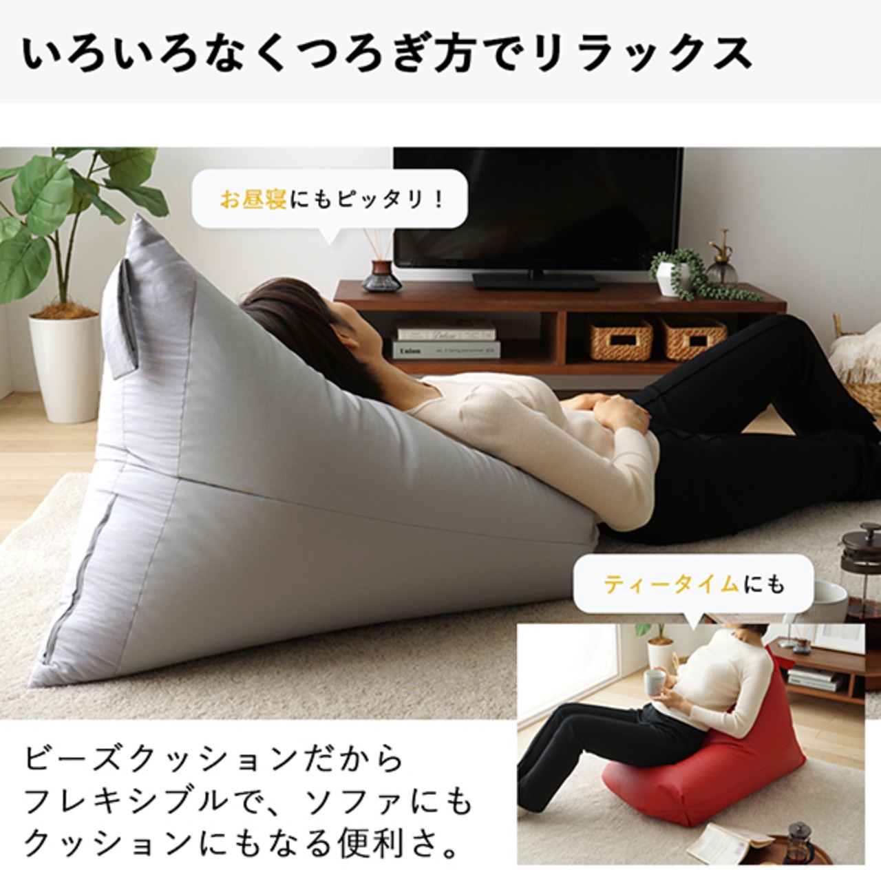 ビーズクッション ソファ レザー 日本製 三角 背もたれ 軽量 取っ手付き クッション 1人掛け