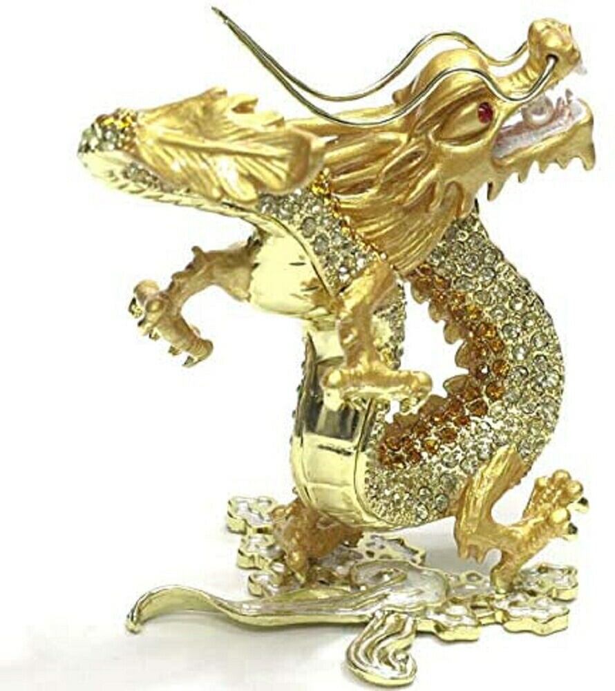 龍の置物 ホワイトorゴールド クリスタル スピリチュアル 風水 ドラゴン 竜 ラインストーン / お守り インテリア プレゼント