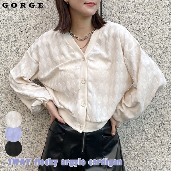 2WAYフロッキーアーガイルカーディガン / ファッション レディースアパレル トップス カーディガン・ボレロ
