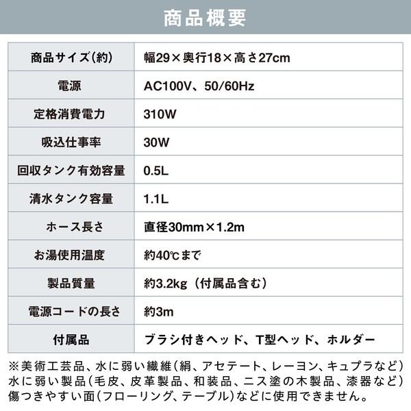 ●付属品:ブラシ付きヘッド、T型ヘッド、ホルダー