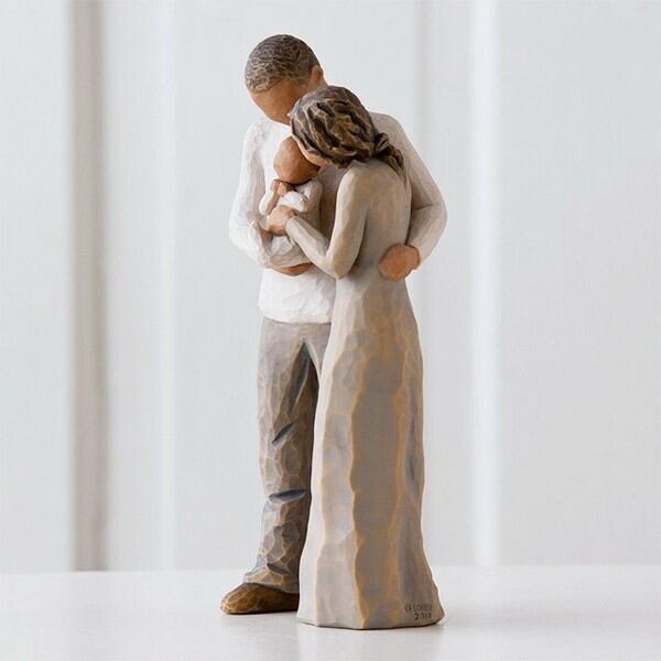 赤ちゃんを愛おしそうに抱っこする両親のオブジェ