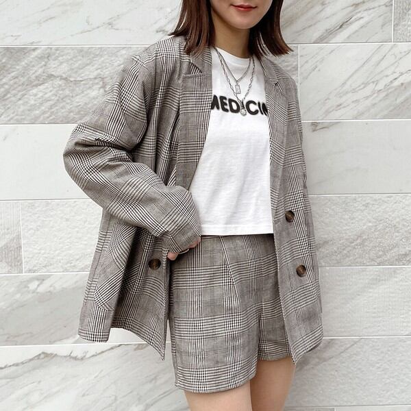 パンツ ボトム チェック ショートパンツ セットアップ可能 春 秋 2313156