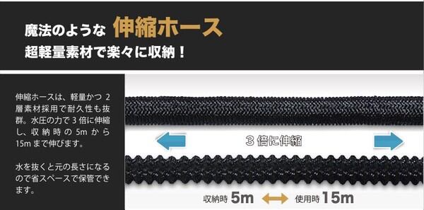 超軽量素材でらくらく収納!伸縮ホースは、軽量かつ2層素材採用で耐久性も抜群