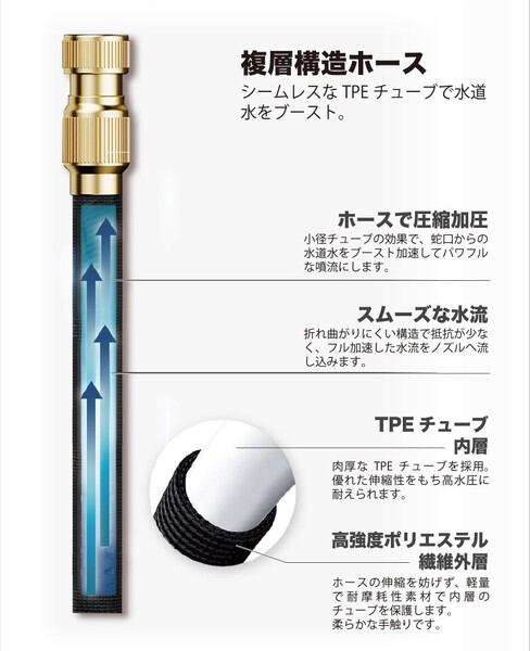 ■複層構造ホースシームレスなTPEチューブで水道水をブースト