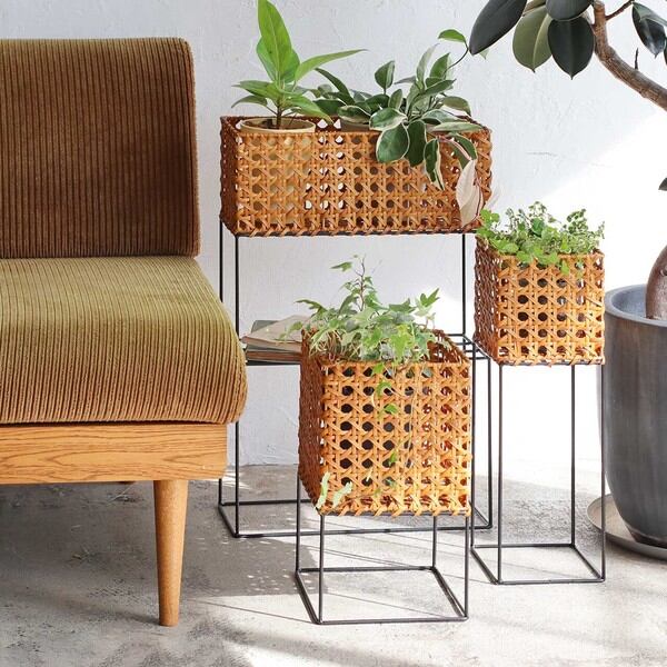 水に強い素材で編まれた八つ目編みのポットスタンド