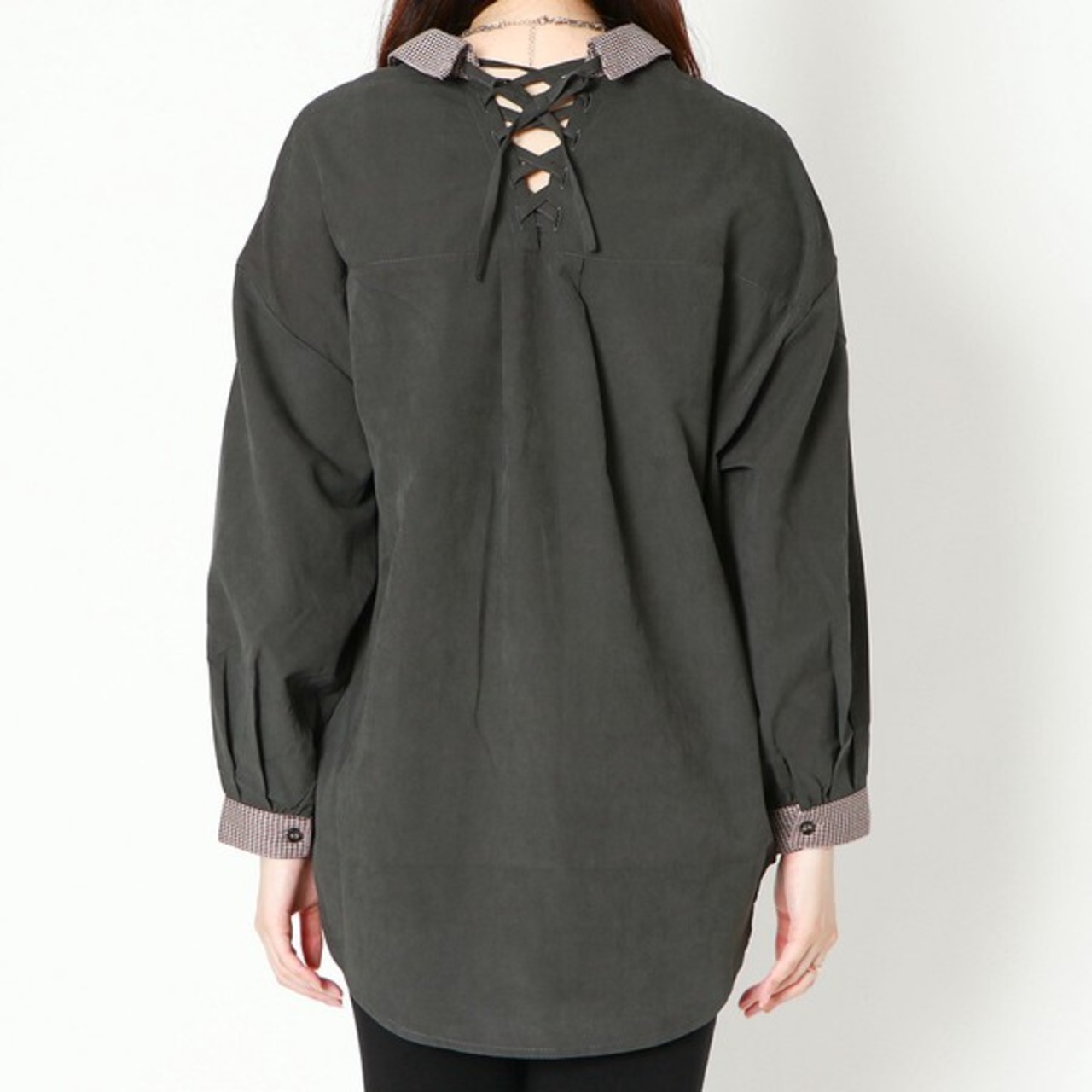 シャツ トップス 配色 バックレース レースアップ 秋 冬 2236137