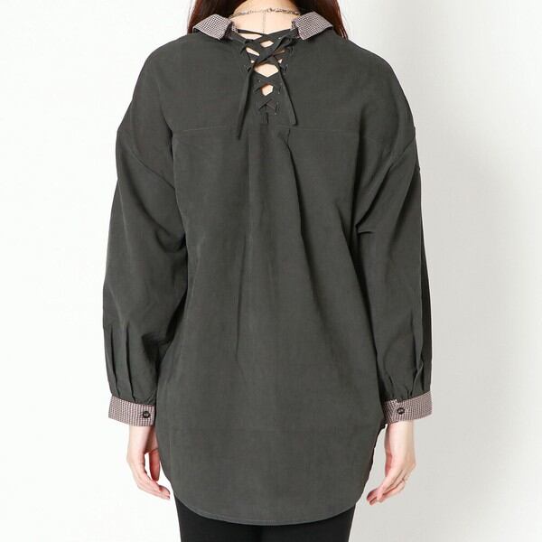 配色バックレースアップシャツ / ファッション レディースアパレル トップス シャツ・ブラウス