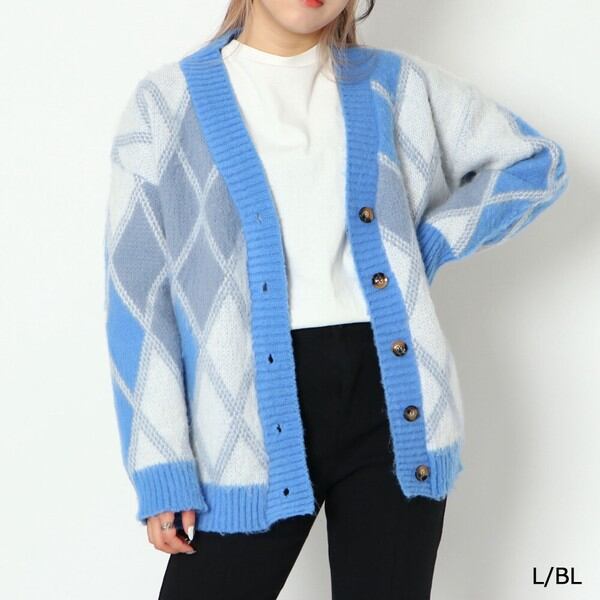 起毛アーガイルカーディガン / ファッション レディースアパレル トップス カーディガン・ボレロ