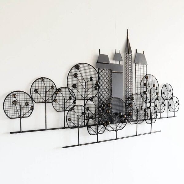町の風景をモチーフとしたアイアンウォールアート、壁飾りです