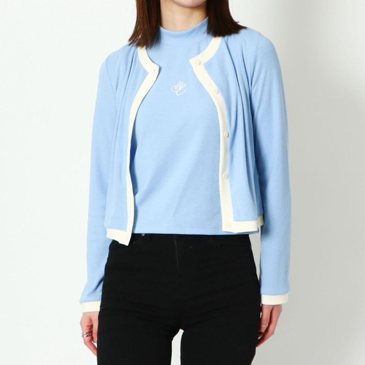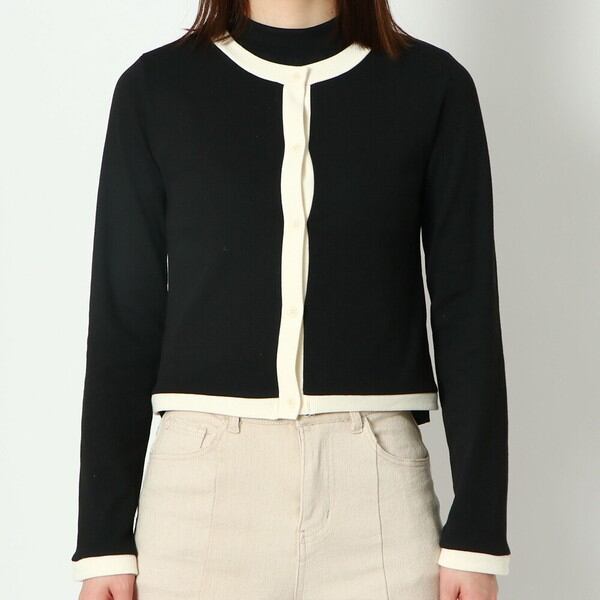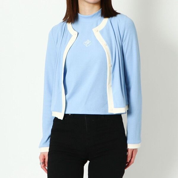 バイカラーでメリハリのあるインナー付き刺しゅうテレコカーディガンの登場★縦ラインを強調するデザインで自然にスタイルアップ♪着まわし力が高い万能デザインなので通学、通勤にも使えるおすすめアイテムです☆