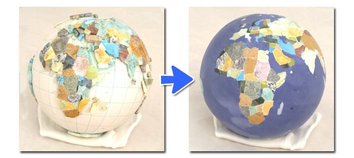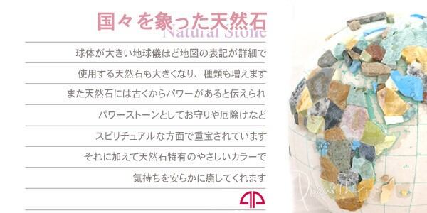 色んな種類の天然石で作られた、ユニセックスなデザインがお洒落な地球儀インテリアです。大陸部分にはカットした天然石を使用し、ひとつひとつ丁寧に手作りされています。