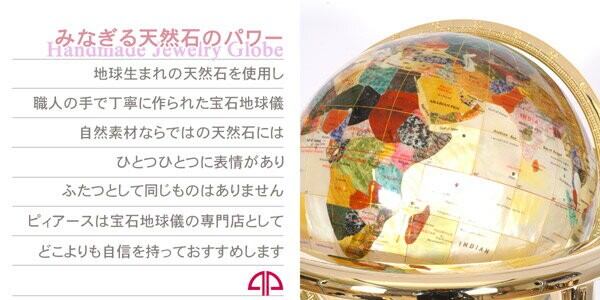 色んな種類の天然石で作られた、ユニセックスなデザインがお洒落な地球儀インテリアです。大陸部分にはカットした天然石を使用し、ひとつひとつ丁寧に手作りされています。