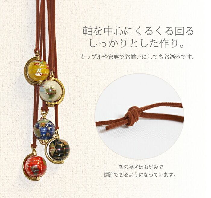 ひとつひとつ丁寧に手作りされた天然石地球儀を 飽きのこないデザインのネックレスにしました。