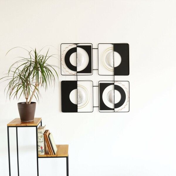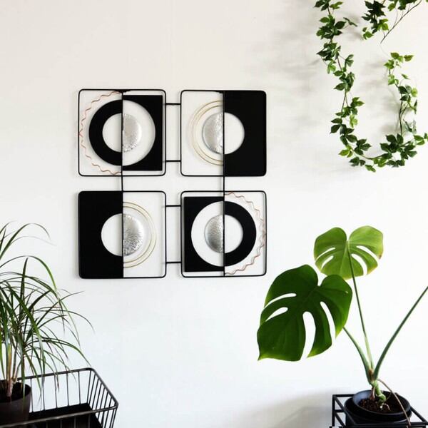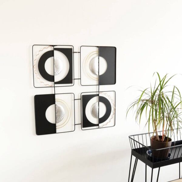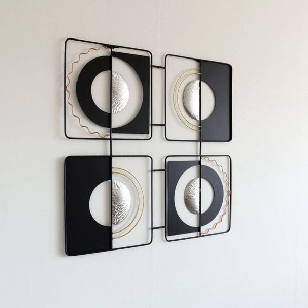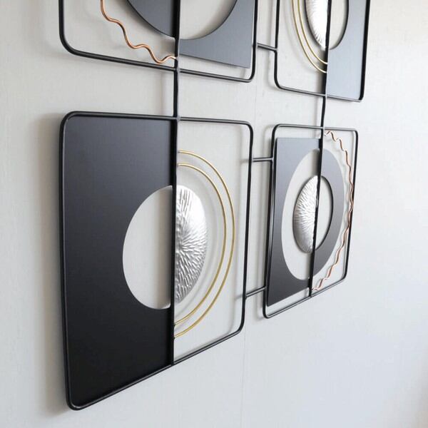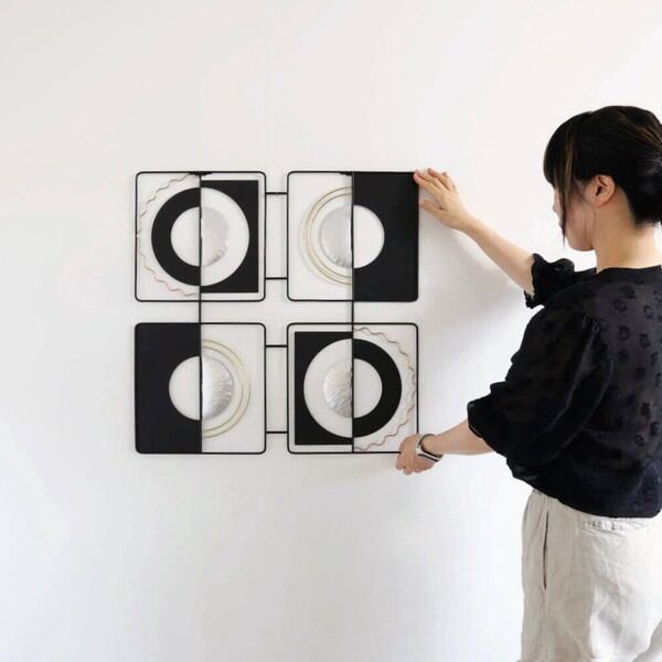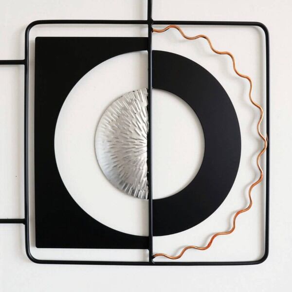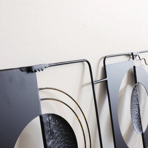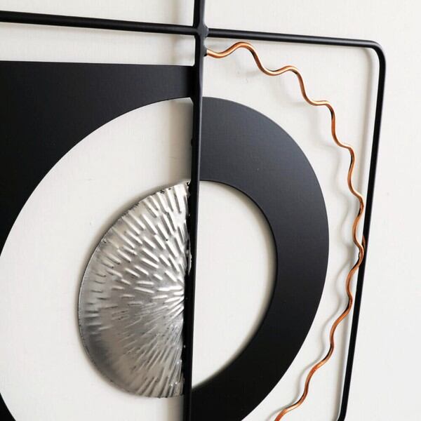 ブラックとシルバーを基調としたモダンテイストのアイアンウォールアート、壁飾りです