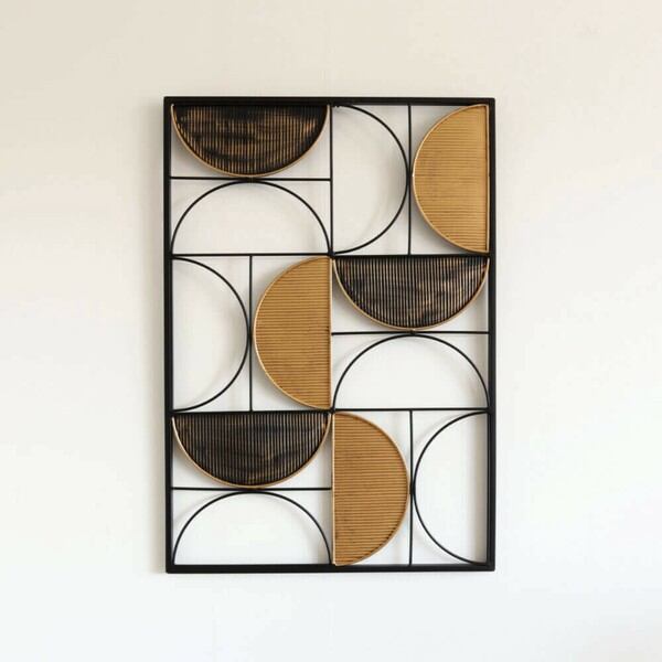 ブラックとゴールドを基調としたモダンテイストのアイアンウォールアート、壁飾りです