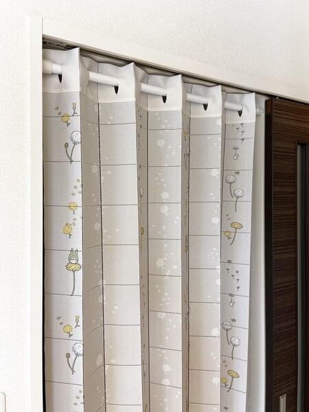 受注生産アコーディオンカーテン トトロ「たんぽぽふわり グレー」96×200cm 日本製 ジブリ / 家具・インテリア ファブリック・敷物 のれん