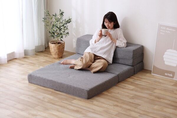 ソファ時は、四つ折りにするとコンパクトなソファになります