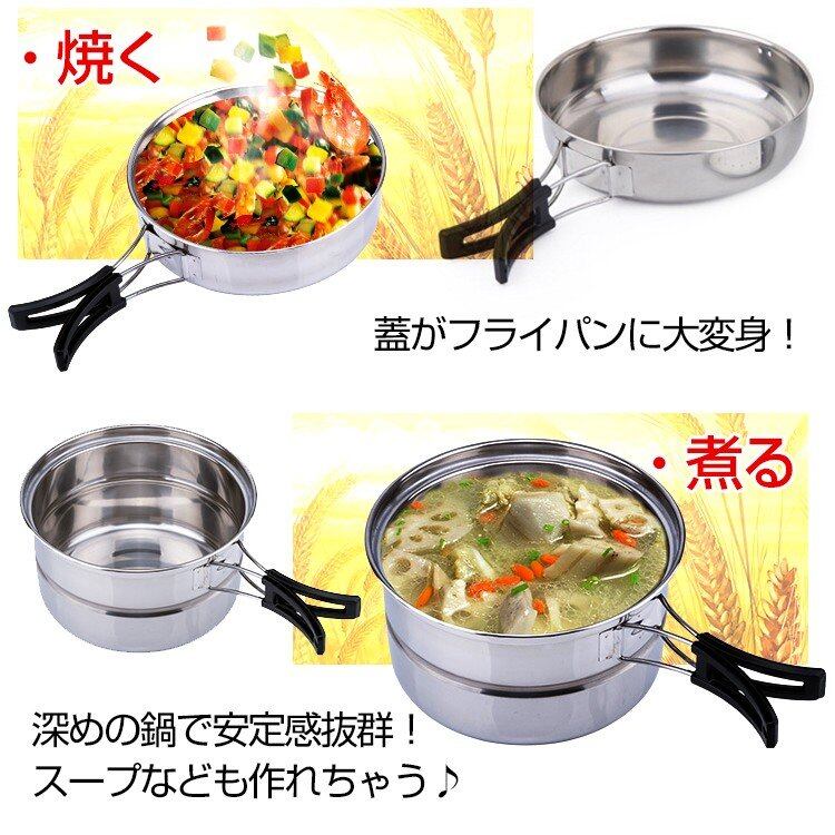 ■キャンプ・登山などの自炊に最適!■蓋を使えば3パターン!■ステンレス製で錆びにくく、直火料理可能で安心■収納もスペースいらず!■非常時、防災グッズとしても活用
