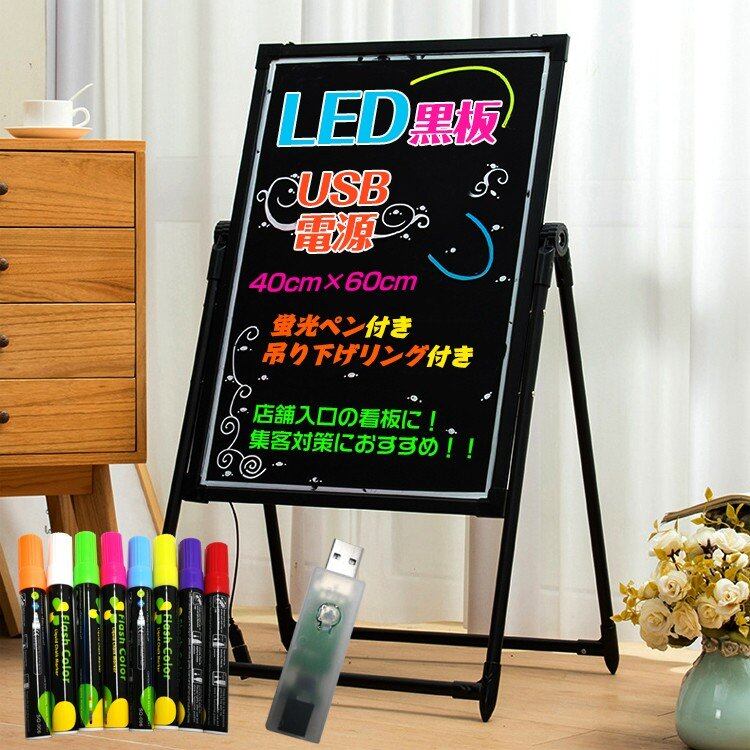 LED黒板 看板 店頭 LED おしゃれ 照明 手作り 文字 スタンド 黒板 看板 40cm×60cm