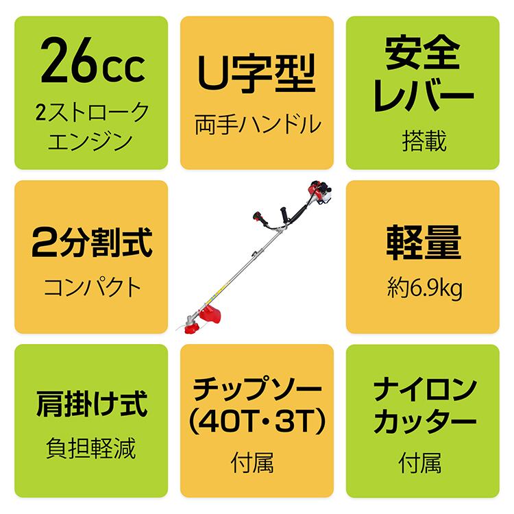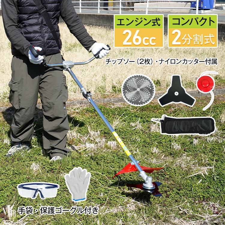 エンジン式草刈機 26cc 芝刈り機 2サイクル 2分割式 チップソー ナイロンコードカッター
