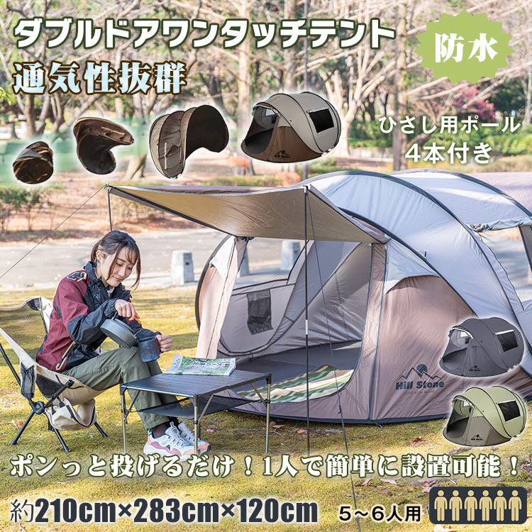 ダブルドアワンタッチテント ポップアップテント テント キャンプ 通気性 2面