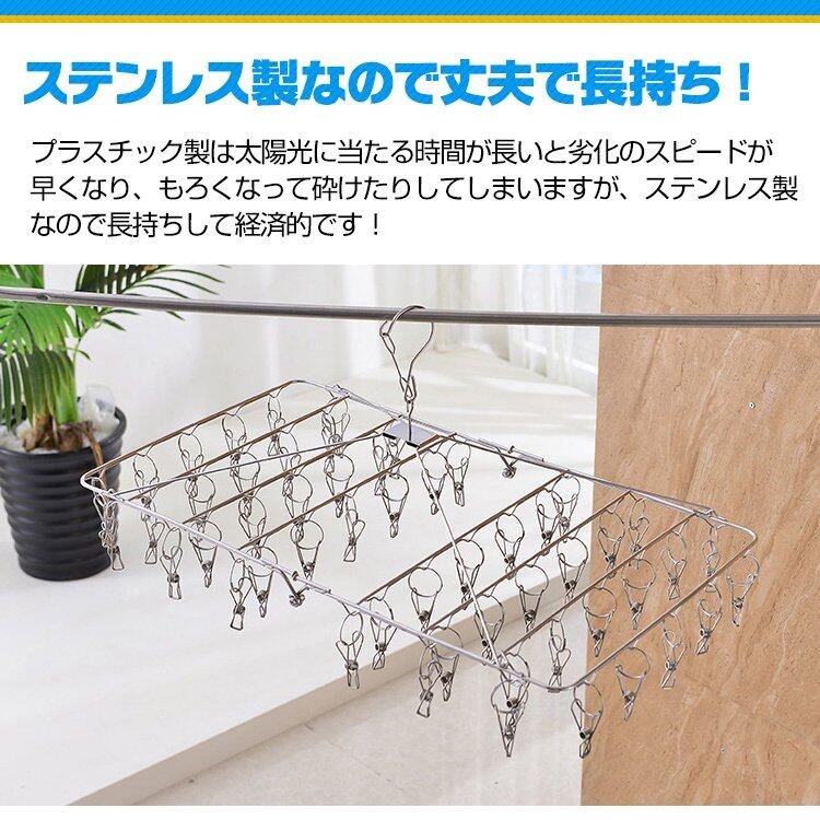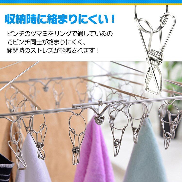 ピンチハンガー ステンレス ピンチ数52 絡まりにくい ネック 回転 収納 洋服 靴下 洗濯物 外干し 庭干し