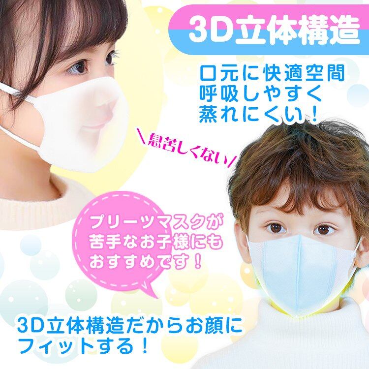 子どもマスク不織布 3D立体60枚 小さめ 血色 耳紐 平ゴム キッズ マスク 息がしやすい