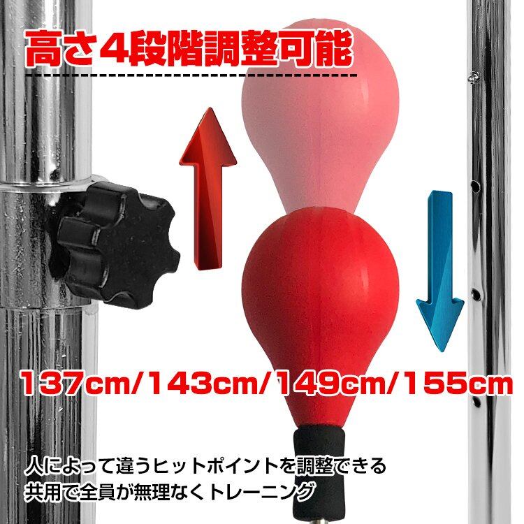 ■運動不足・ストレス解消におすすめなパンチングボール■設置場所に困らない自立式■高さは4段階で調整可能■パンチをすると支柱の鉄鋼バネの力でかえってくる高反発スプリング■吸盤のついた土台は砂や水を注入して安定感アップ可能
