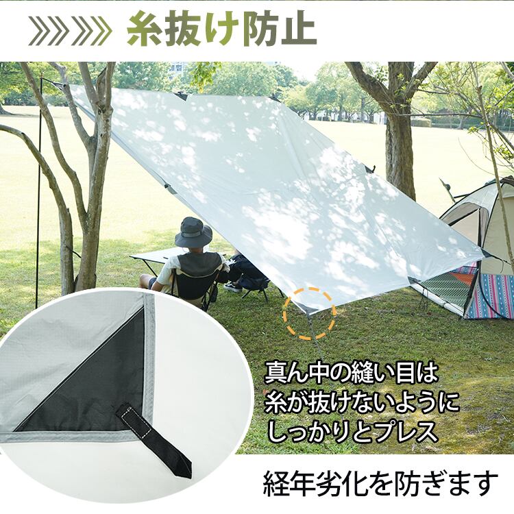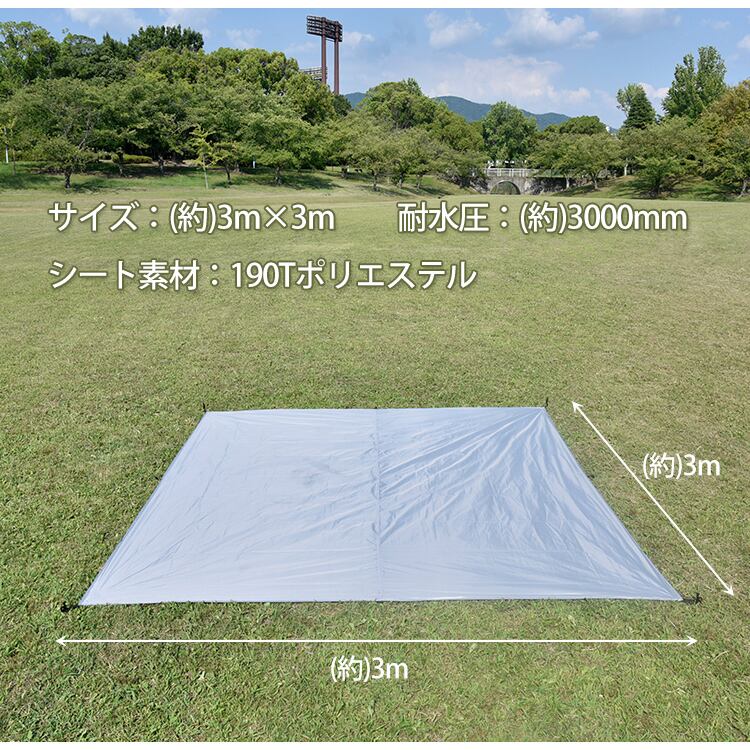 ■アレンジしやすい自由性があるスクエアタープです■タープにはループが多数設置されています■シートのポリエステル生地は強い雨にも耐えられます■グランドシートとしても使えます■キャンプ初心者や女性でも簡単に折り畳みできます