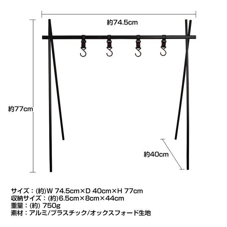 ■食器やランタン、キャンプ雑貨などを掛けられるアウトドアラック■可動式ハンガーフックでお好きな配置に■軽量だけどしっかりと支える頑丈なアルミフレーム■折りたたみ式で設置楽々♪■専用の収納袋にコンパクト収納で持ち運びしやすい■サイドに設置できる三角形の小物収納袋付き