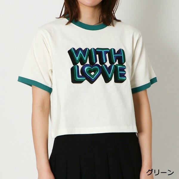 Tシャツ トップス 刺繍 リンガー 春 夏 秋 2310122