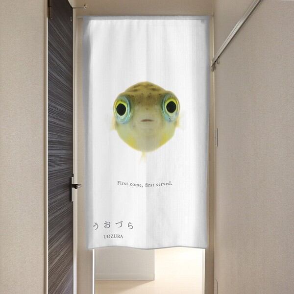 のれん 受注生産 目隠し うおづら「アベニーパファー」 幅85×丈150cm 日本製 魚 / 家具・インテリア ファブリック・敷物