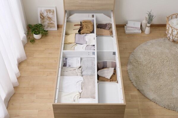 ベッド下の引き出し収納以外のスペースも活用できるため、季節ものや頻繁に着ないお洋服なども収納可能です