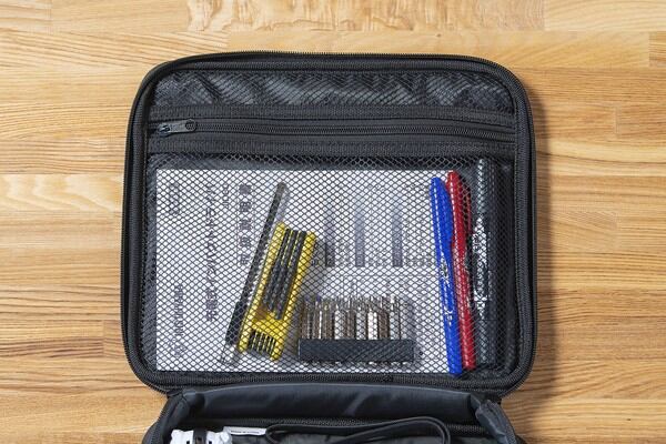 ソフトケースはメッシュポケット付きで、付属パーツも散らかりません