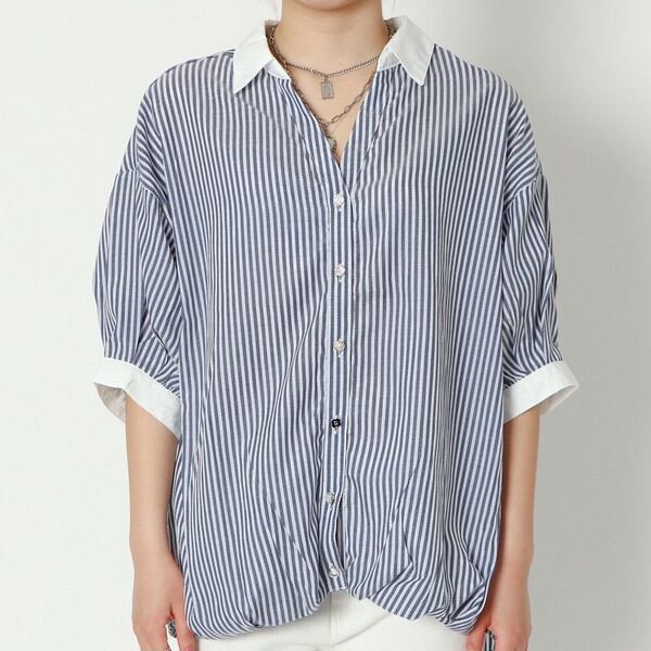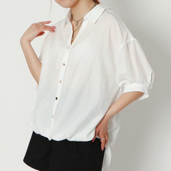 シャツ トップス 5分袖 多種ボタン バックレース 春 夏 2311033