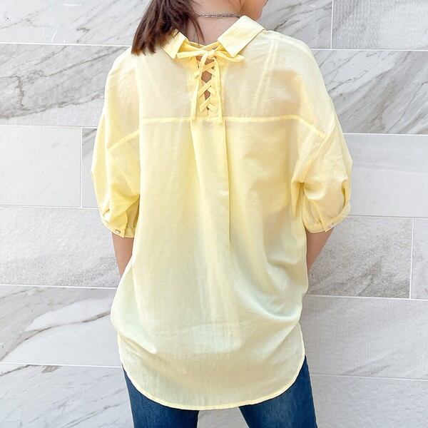 5分多種ボタンバックレースアップシャツ / ファッション レディースアパレル トップス シャツ・ブラウス