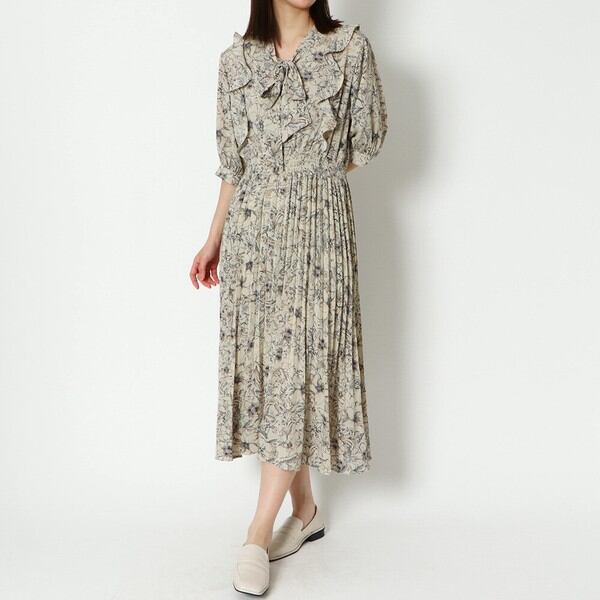どこかレトロな花柄とボウタイがデザインが目を惹くワンピースが登場★ウエストは着心地の良い広幅のシャーリングデザインにすることで、おなか周りも楽ちん♪袖口はふわっとパフスリーブで腕に優しくフィットするデザインに◎スカート部分はプリーツ加工を施す事で動きの出るシルエットがPointです☆