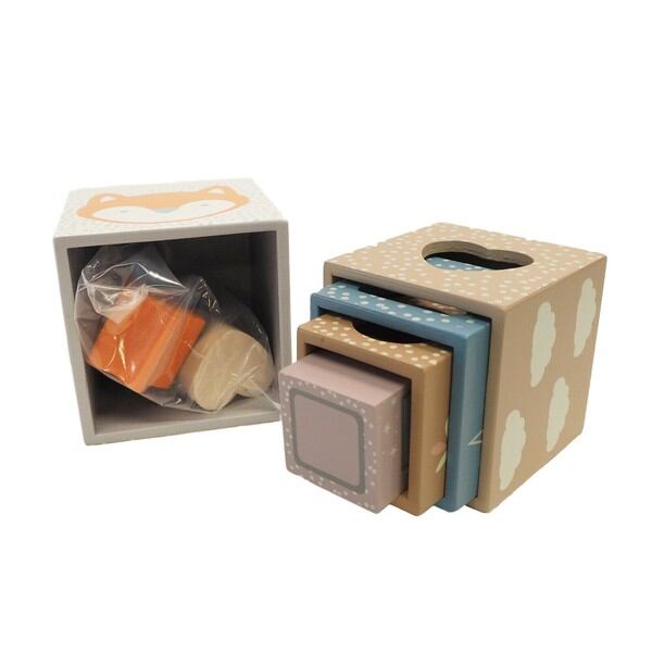 キツネ、アライグマ、フクロウ、ウサギの4種類の森林動物をモチーフにした知育玩具のシリーズです