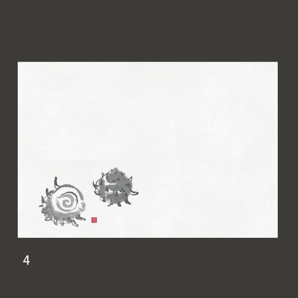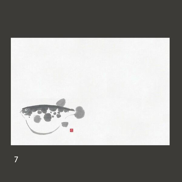 日本料理で馴染みのある魚や貝類を味のある墨絵であしらった、お料理敷紙です