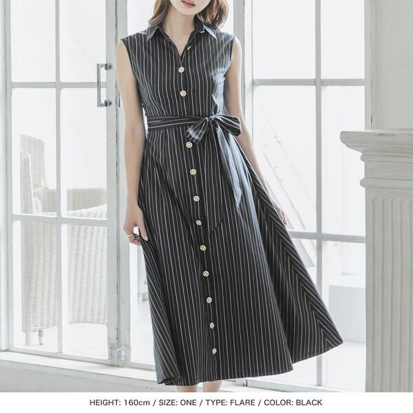 ストライプ柄で洗練された雰囲気が漂うシャツワンピース。