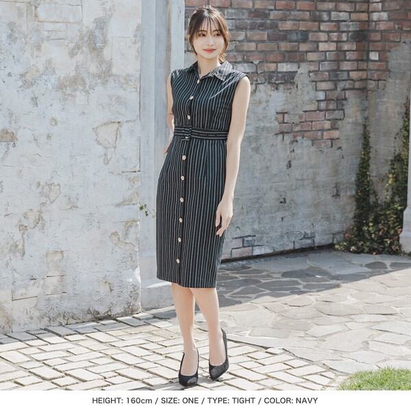 ワンピース 形が選べるストライプ柄シャツワンピース 23071 / ファッション レディースアパレル ワンピース・ドレス
