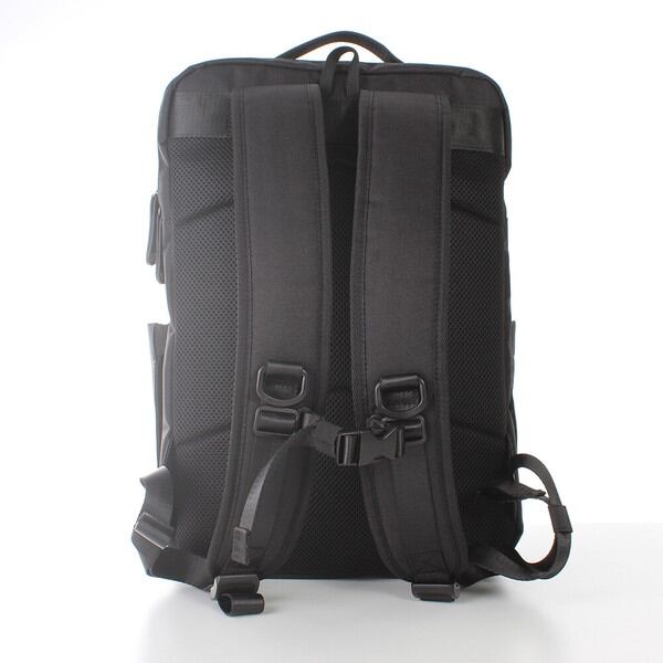 裏面にはメッシュのパッド付きのストラップがあり、チェストベルトも付属しているため、身体に合わせて長さを調節することができます